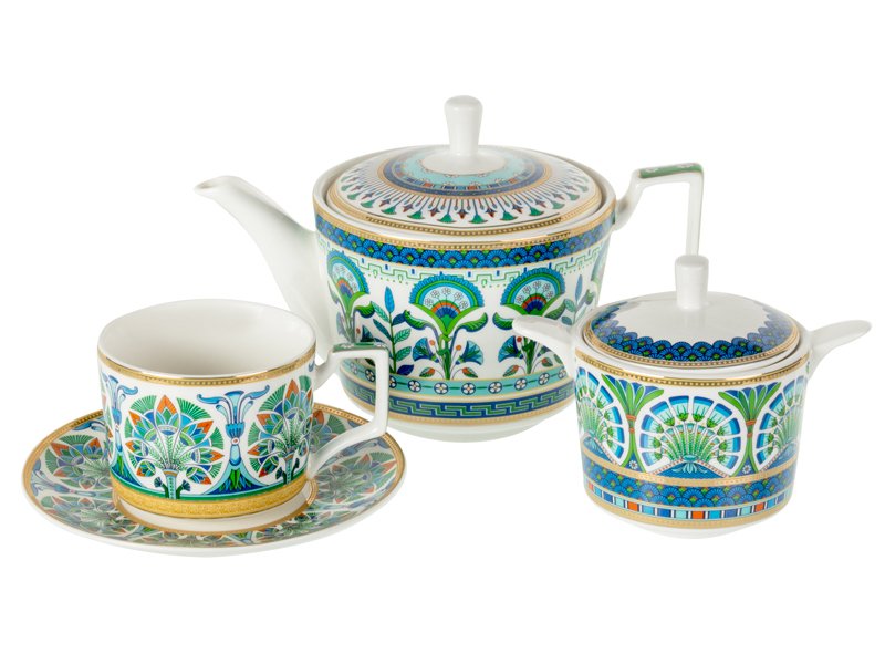 Чайный набор Velazza на 14 предметов — это воплощение восточной гармонии и настоящего гастрономического вдохновения. Сложный орнамент в насыщенных бирюзовых, зеленых и золотых тонах превращает каждую чашку, чайник и сахарницу в произведение искусства. Такой набор не просто украшает стол — он создаёт атмосферу особого тепла и эстетики, где каждая деталь радует глаз.