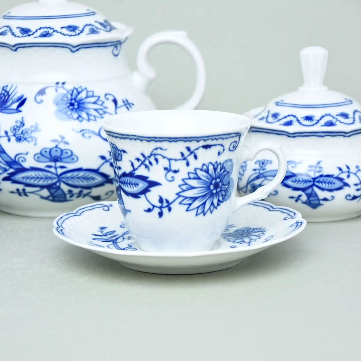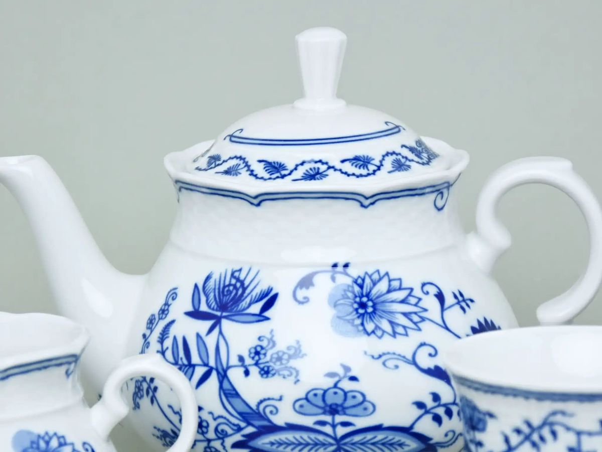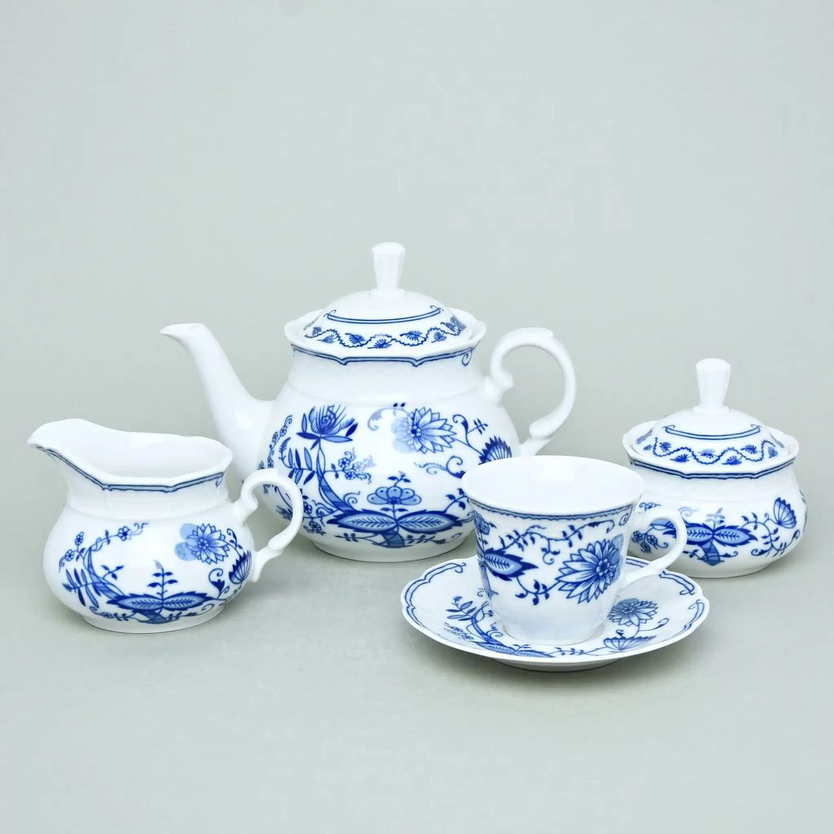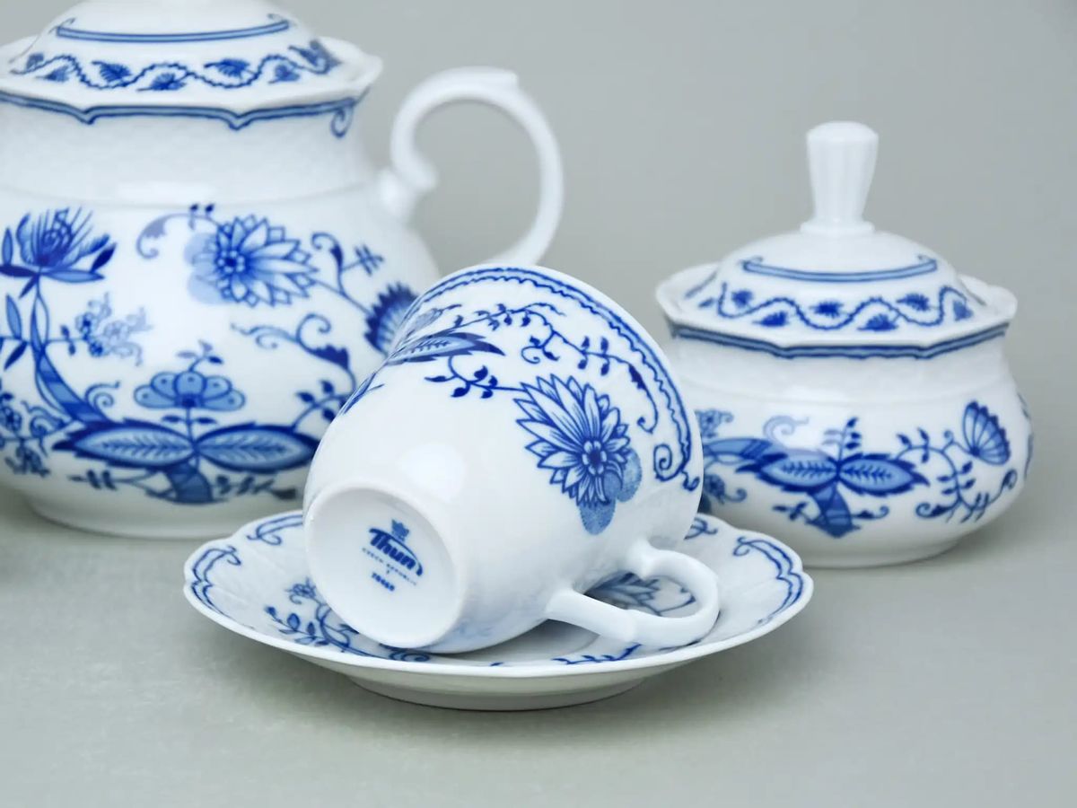 Оригинальный чешский сервиз Синий лук с низкими чашками расчитан на 6 персон и состоит из 17 предметов: