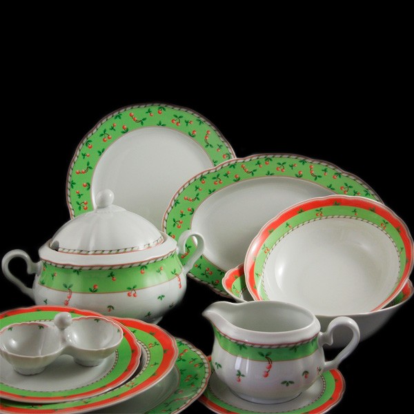 Высококачественный фарфор белого цвета с зеленым ободком и красивым цветным рисунком создаст атмосферу праздника и напомнит о солнечным лете. Его прочная структура и устойчивость к сколам позволяет пользоваться данной посудой каждый день. Фарфор чешского производителя Thun всегда будет выглядеть на Вашем столе элегантно и в тоже время нарядно и торжественно. Высокое качество продукции «Thun» достигается многовековым опытом в производстве фарфора. Использование самых современных технологий позволяет производить изделия различных размеров и форм.