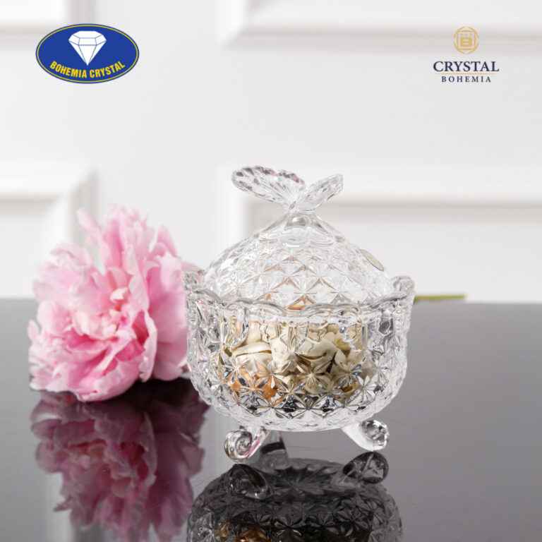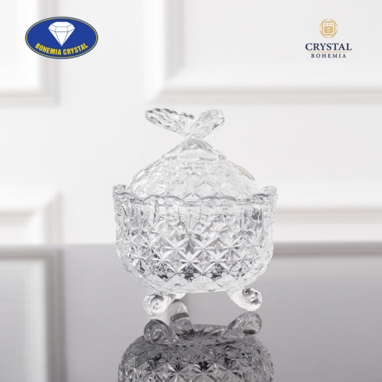 Цукерниця Bohemia Butterfly з кришкою на ніжках (13,5 см) — це елегантний і стильний аксесуар, який додасть особливий штрих у будь-який інтер’єр. Виготовлена з високоякісного хрусталю, вона вирізняється чистою прозорістю та приємним блиском, які підкреслюють витонченість форми й декоративну обробку. Візерунок «Butterfly» (метелик) на поверхні цукерниці створює ефект легкості й повітряності, асоціюючись із ніжністю.