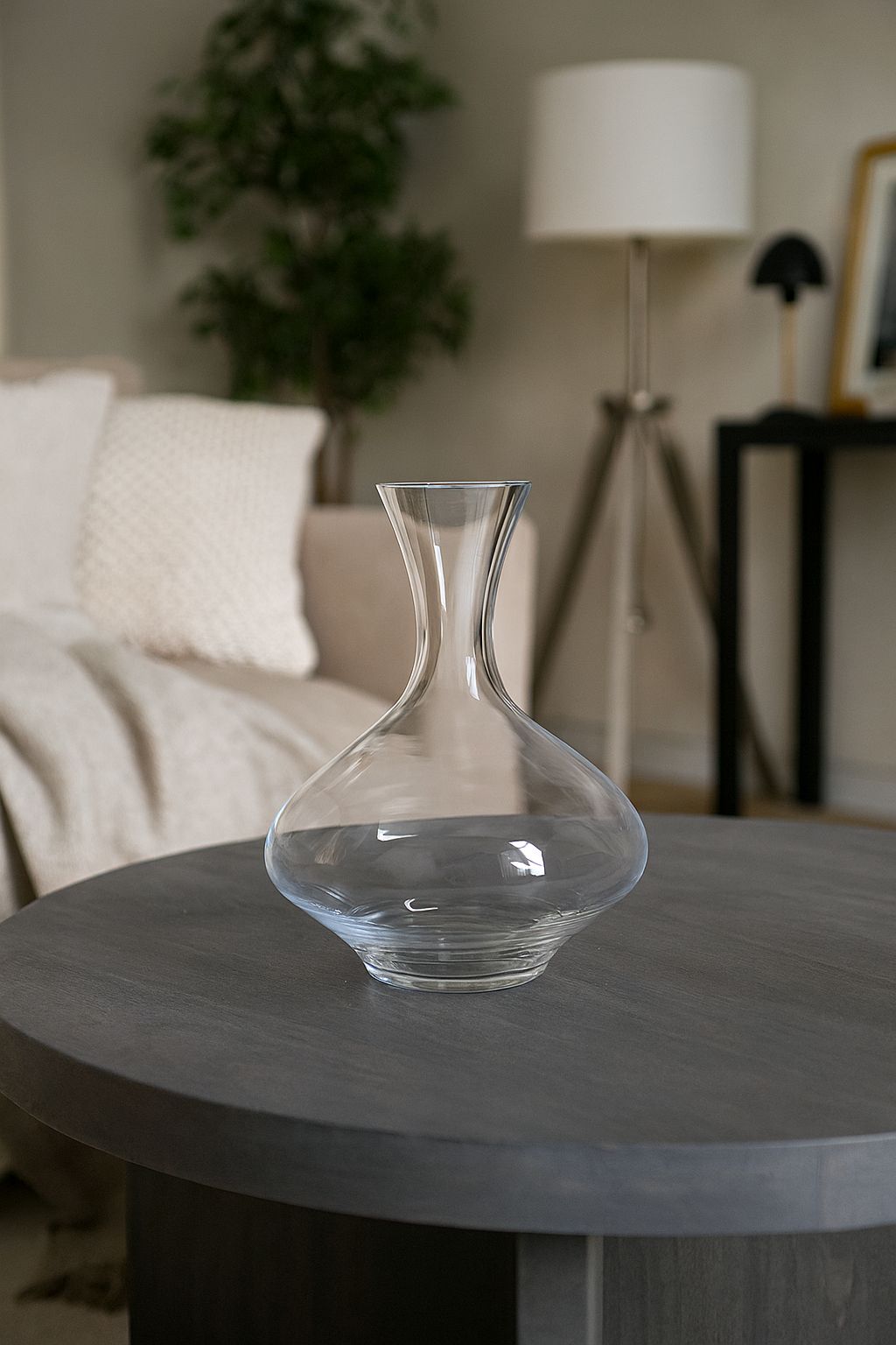 Прозорість скла підкреслює колір та текстуру вина, створюючи ефектну подачу. Широка основа забезпечує максимальний дотик напою з повітрям, а вузьке шийка допомагає направити аромат до келиха. Така форма особливо рекомендована для витриманих червоних вин, які потребують насиченого дихання.