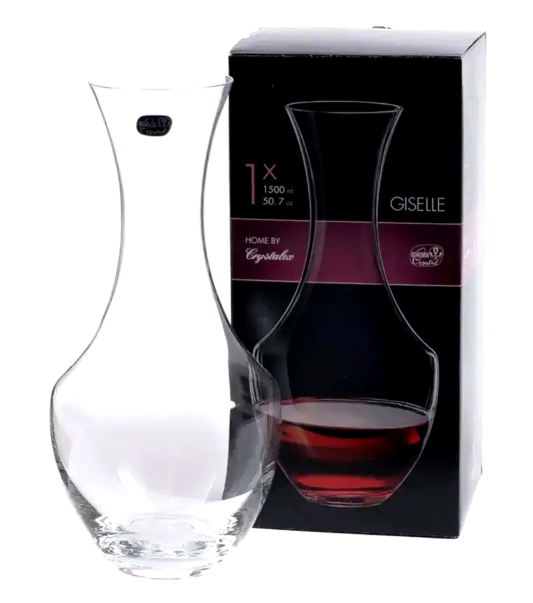 Декантер для вина Bohemia Giselle - це елегантне рішення для правильної подачі та аерації вина. Виконаний з першокласного богемського скла, він вирізняється винятковою прозорістю, чистими лініями і високою міцністю. Об'єм 1,5 літра дає змогу використовувати його як для повсякденних, так і для урочистих випадків, ефектно подаючи і розкриваючи смак вашого вина.