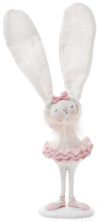 Фігурка одягнена у милу рожеву пачку з хвилястим оздобленням, що нагадує справжній балетний костюм. Витончені туфельки, кокетливий бантик і пухнаста комірка створюють ніжний і казковий образ. Її довгі текстильні вушка додають фігурці грайливості та оригінальності.