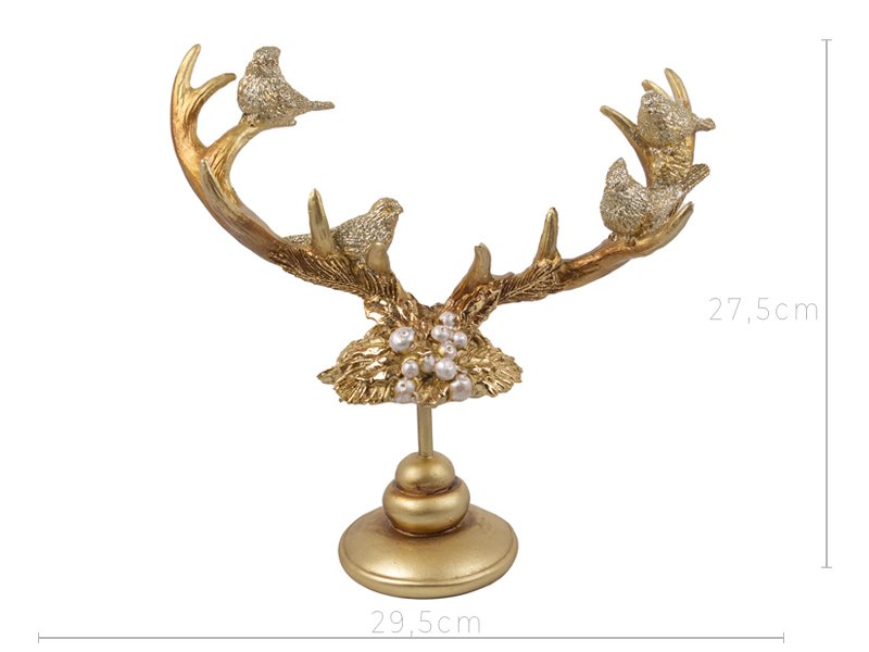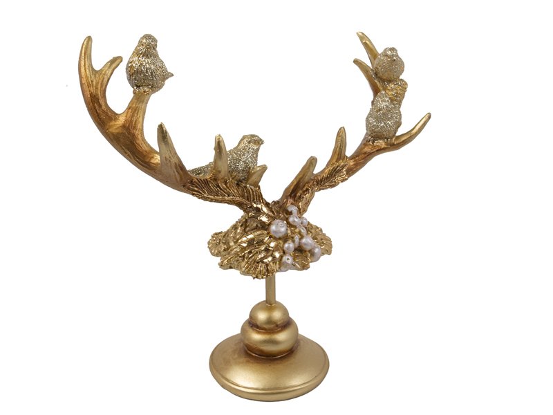 Декоративная фигурка «Рога оленя» — это эффектное интерьерное украшение, сочетающее в себе изящество природы и утончённый стиль. Золотые ветвистые рога, украшенные миниатюрными птичками и перламутровыми бусинами, выглядят словно произведение искусства. Скульптура притягивает внимание своим изысканным блеском и станет элегантным акцентом на камине, консоли или праздничном столе.