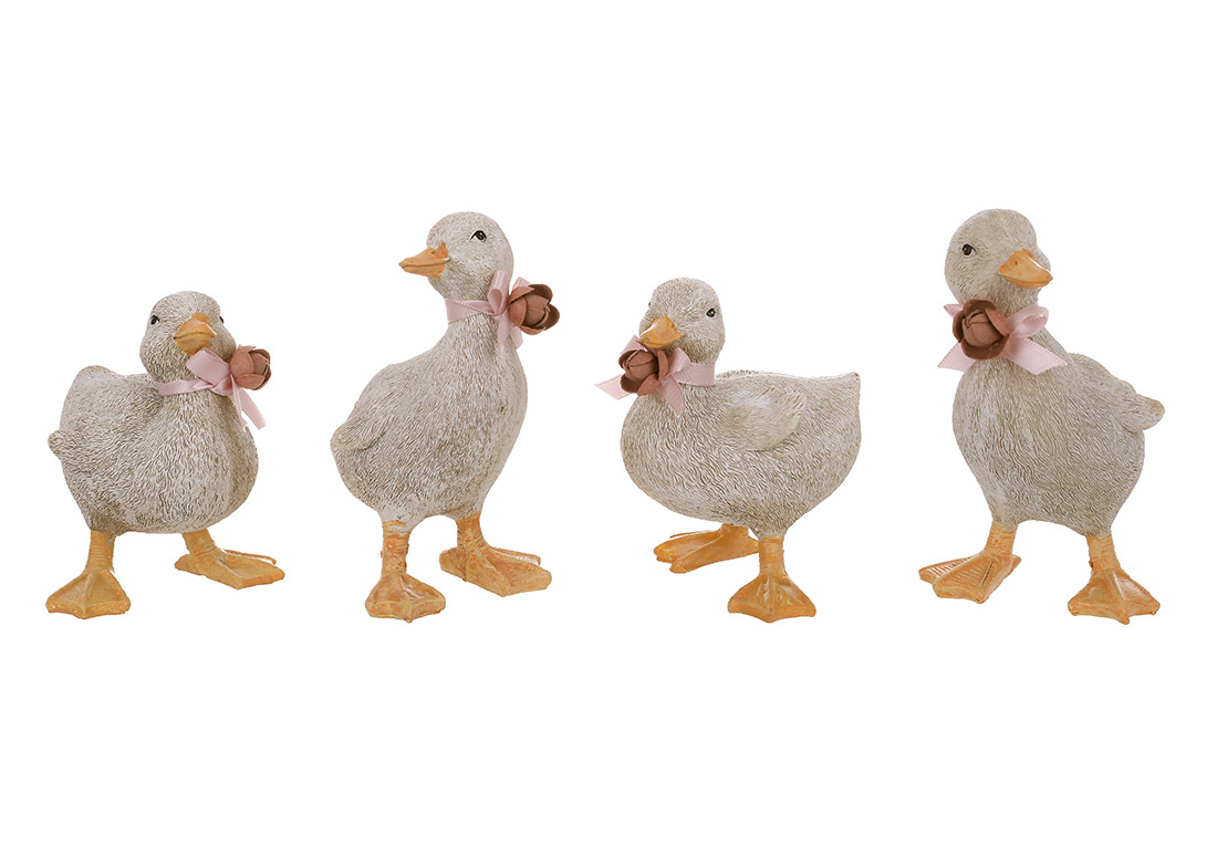 Набор декоративных утят отлично подойдёт для весеннего или пасхального декора. Четыре фигурки в разных позах, с аккуратными бантиками и в спокойной серо-бежевой гамме гармонично впишутся в интерьер — будь то полка, подоконник, обеденный стол или детская.