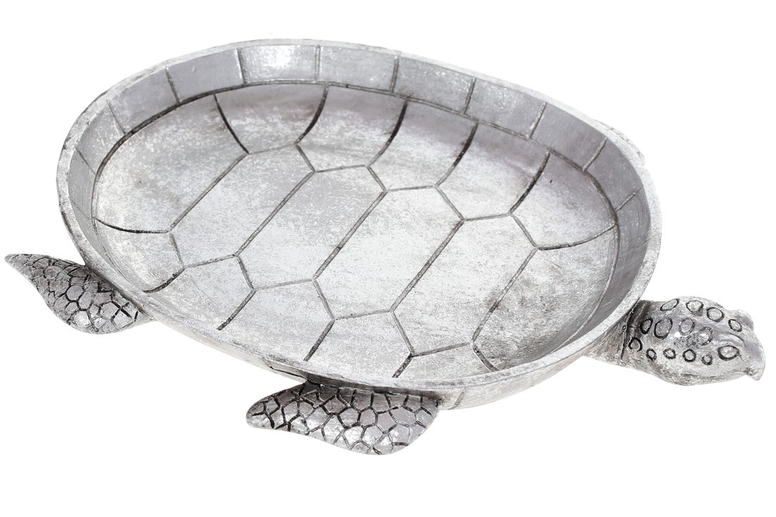 Декоративна тарілка полістоун Черепаха 25.8*21.7*3.2 см, Колір: Срібний