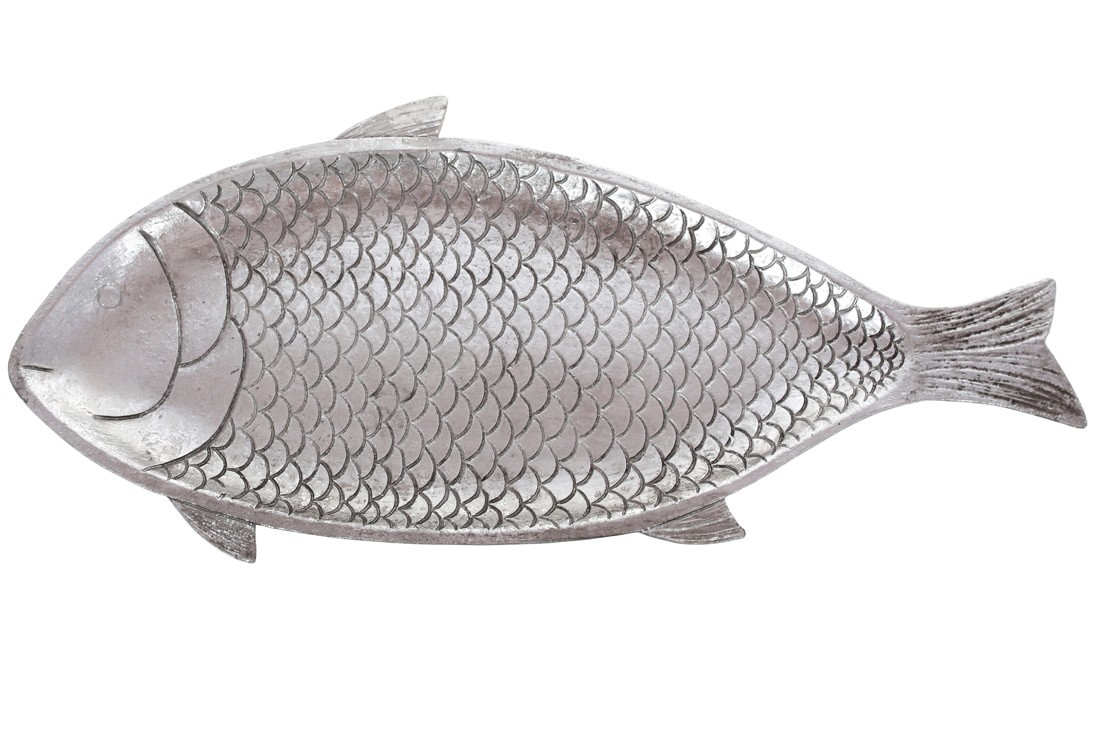 Декоративная тарелка полистоун Рыба 38.5*17*2.3 см серебрянная