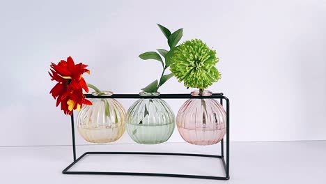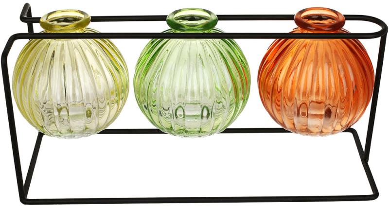 Набор из 3 стеклянных ваз на металлической подставке — гармония цвета и формы