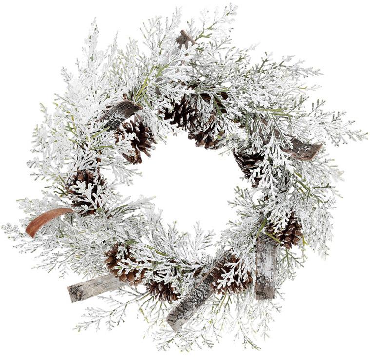 Декоративный венок с эффектом инея Белая хвоя D 50см