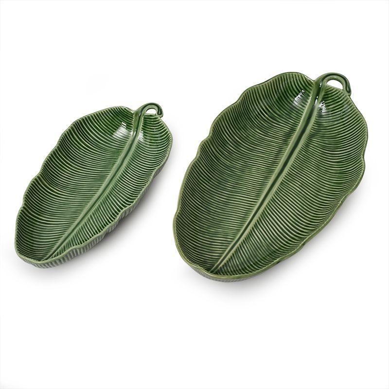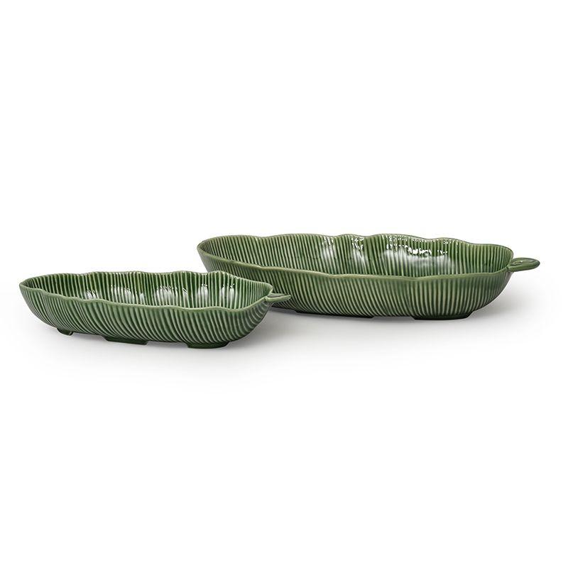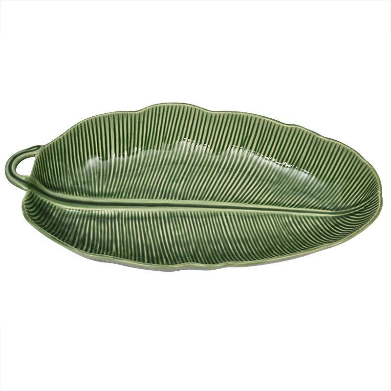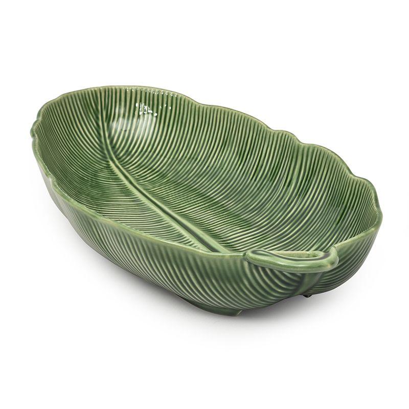Длинное глубокое блюдо из керамики с рельефным дизайном Банановый Листок