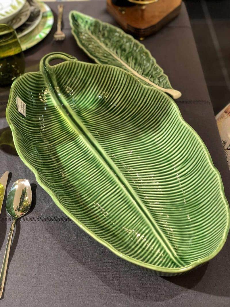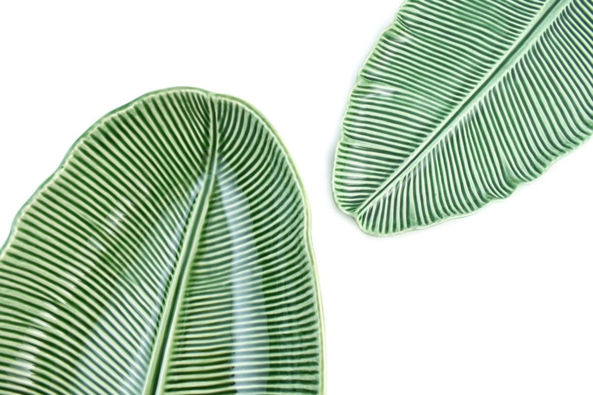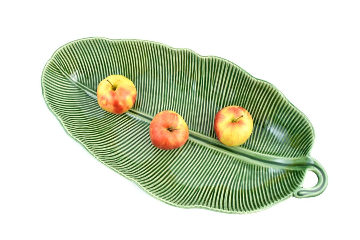 Это длинное глубокое керамическое блюдо в форме бананового листа сразу привлекает внимание своим необычным рельефом и насыщенным зелёным цветом. Его вытянутая форма идеально подходит для подачи закусок, фруктов, гарниров или салатов. Ручная работа подчёркивает натуральные линии листа, создавая эффект живой природы на столе. Благодаря прочной майолике изделие устойчиво к сколам и прекрасно сохраняет внешний вид годами. Гладкая глазурь облегчает уход — блюдо легко моется и не впитывает запахи. Такая стильная сервировочная посуда станет изюминкой любого застолья и ярким акцентом интерьера.