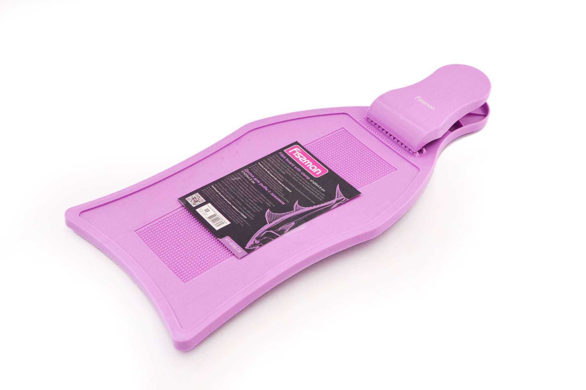 Доска Fissman с зажимом для чистки и разделки рыбы. Размер: 47x20см. Выполнена из высококачественного пищевого пластика. Оснащена специальным удобным зажимом для фиксации рыбьего хвоста, шероховатая поверхность препятствует скольжению рыбы во время чистки. На нижней стороне размещены присоски, благодаря которым доска не скользит на столешнице. Цвет - сиреневый. Удобна в использовании и легка в уходе. Можно мыть в посудомоечной машине.