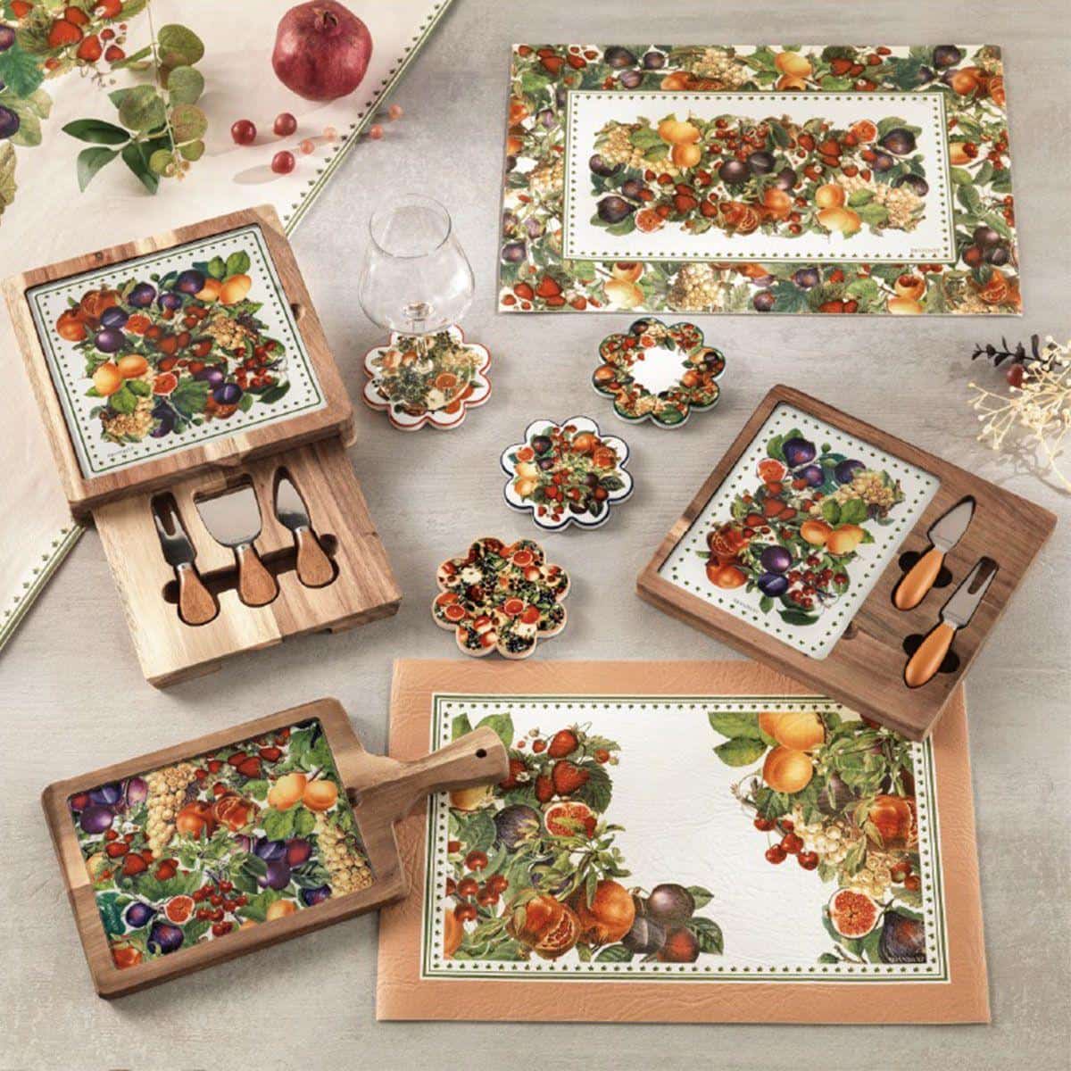 Доска для подачи сыра с приборами Осенние плоды