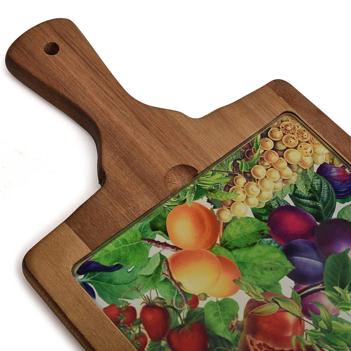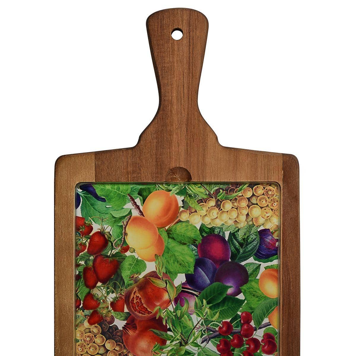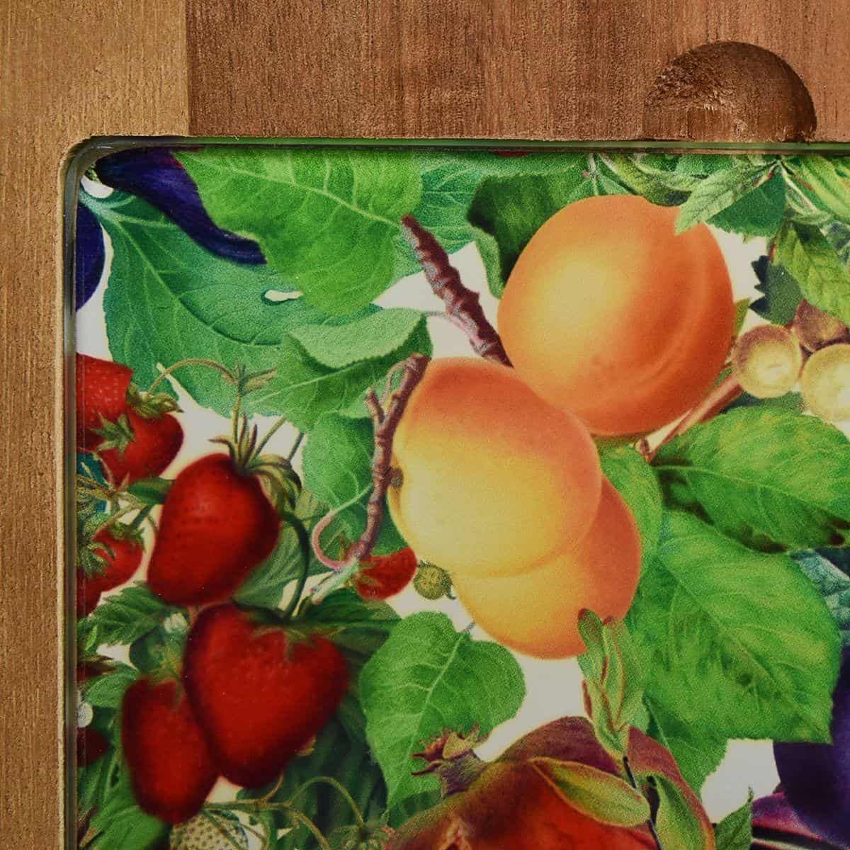 Дошка кухонна дерев'яна зі скляною вставкою Перші Плоди 18×34,5 см