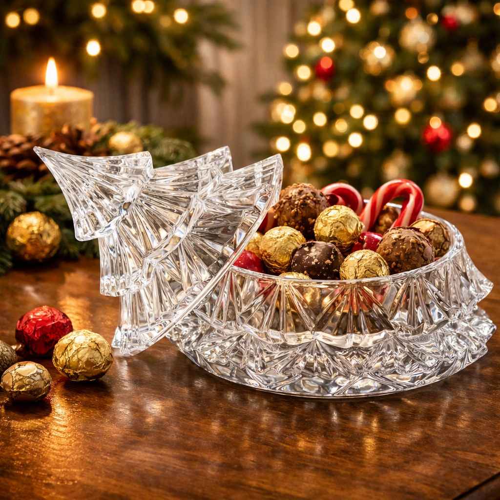 Завдяки компактному розміру доза-ялинка легко розміщується на святковому столі, комоді або полиці. Вона гармонійно доповнює новорічний інтер’єр і може використовуватися як самостійний декор. Кришталева ялинка стане красивим подарунком і вишуканою прикрасою зимових свят.