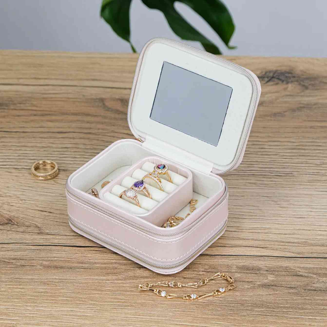 Всередині все організовано так, щоб кожна прикраса мала своє місце та зберігала ідеальний вигляд. М’яка поверхня дбайливо захищає навіть найделікатніші вироби, а вбудоване дзеркало перетворює скриньку на зручний інструмент для швидких образів — вдома, у дорозі чи перед важливою зустріччю. Міцний корпус і продуманий формат роблять її надійним супутником, який не підведе ні в подорожі, ні в щоденному житті.