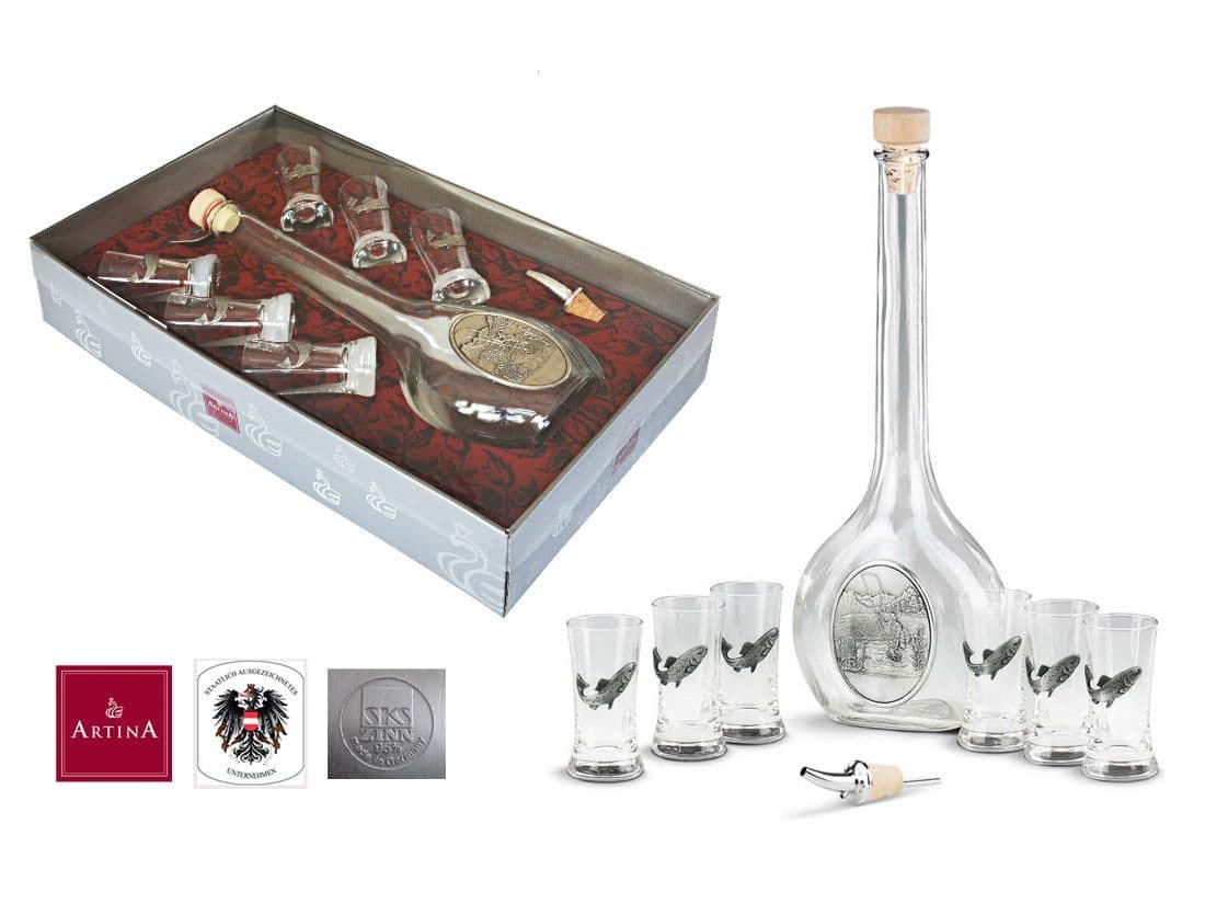 Ексклюзивний набір для горілки та шнапсу німецького бренду Artina SKS, вироби виготовлені з олова. Відомої у всьому світі завдяки чудовій ручній роботі досвідчених німецьких майстрів, які навіть сьогодні, у вік передових технологій, віддають перевагу ручній роботі.