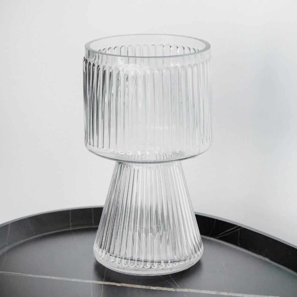 Скляна ваза виражає в собі витонченість та стиль, створюючи чудову базу для улюблених квіткових композицій. Виготовлена з високоякісного скла, вона гармонійно доповнює будь-який простір, будь то дім, кафе або фотозона. Збагатіть свій простір чарівністю за допомогою нашої скляної вази для квітів. Це ідеальне доповнення для вашого інтер'єру та прекрасний подарунок для близьких, друзів та колег.