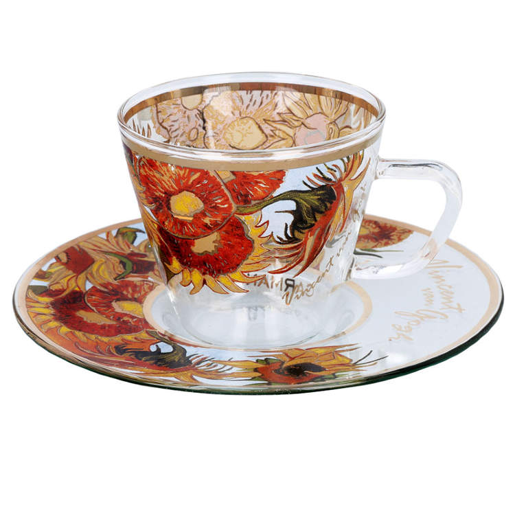 Элегантная стеклянная чашка для эспрессо Ван Гог Подсолнухи 80 мл