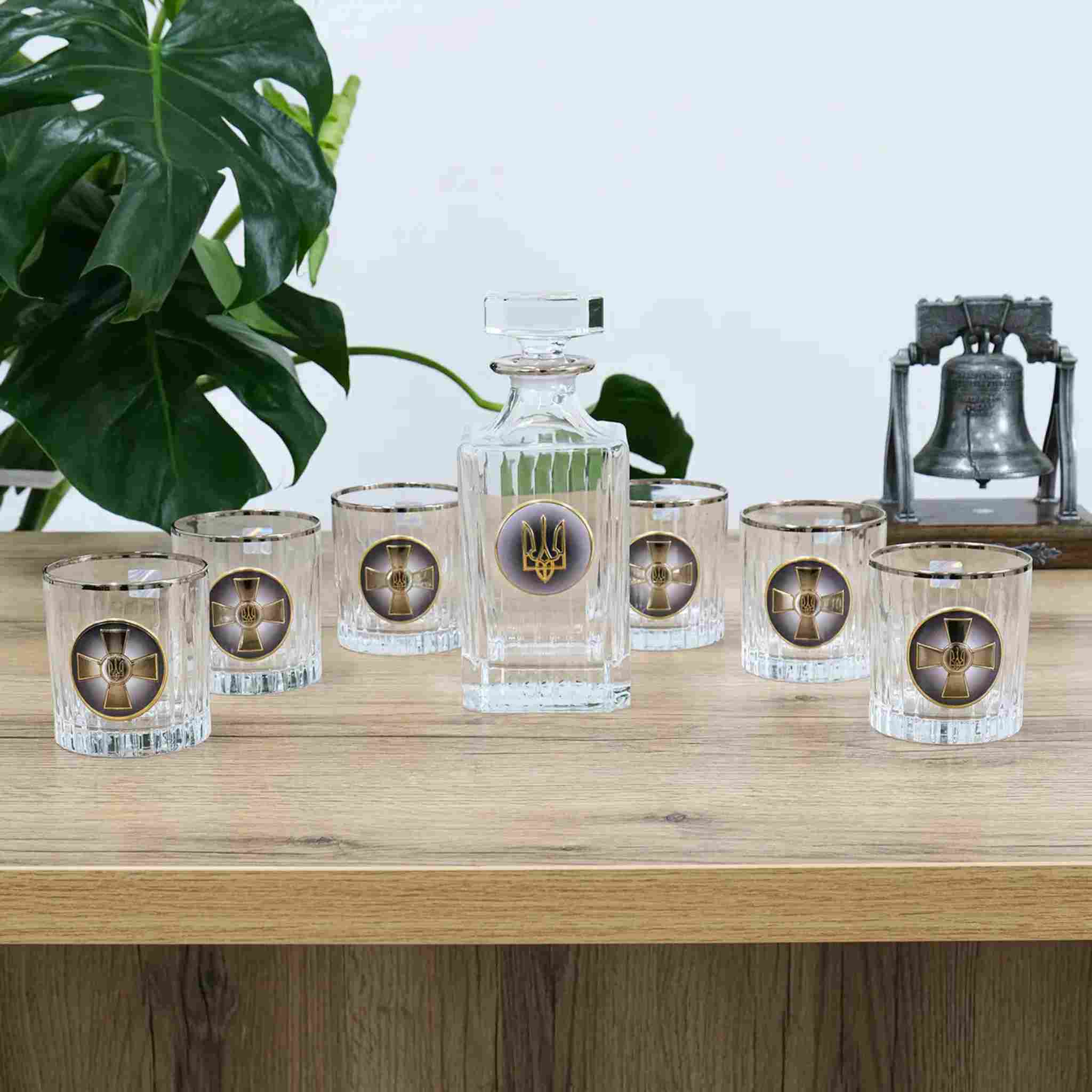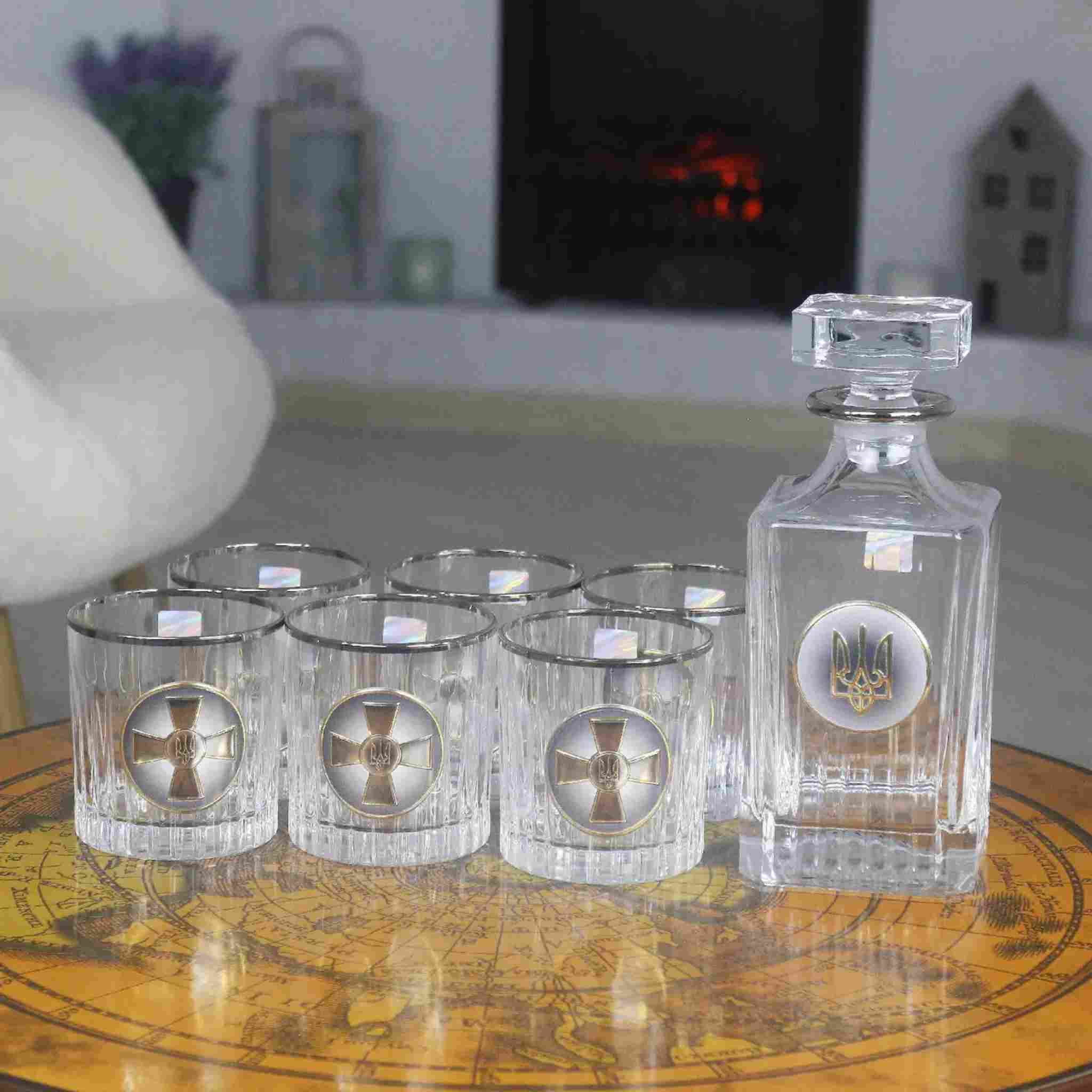Элитный набор для виски из экохрусталя Армейский 6 бокалов + графин 850 мл