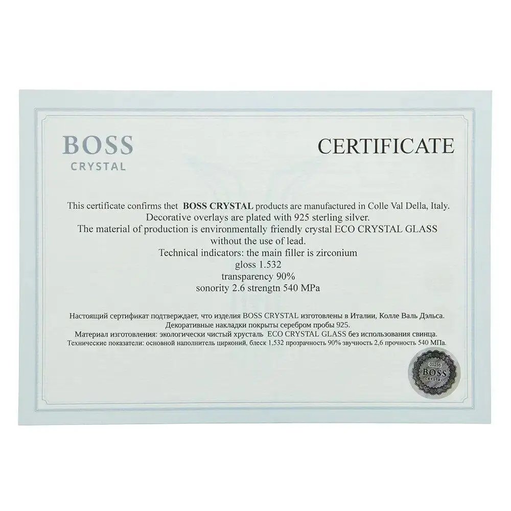 Созданный для настоящих героев — военнослужащих, этот комплект становится символом уважения, благодарности и признания. Изготовленный из экологически чистого итальянского хрусталя в регионе Colle Val d’Elsa, он впечатляет кристальной прозрачностью, благородным блеском и изящной формой.