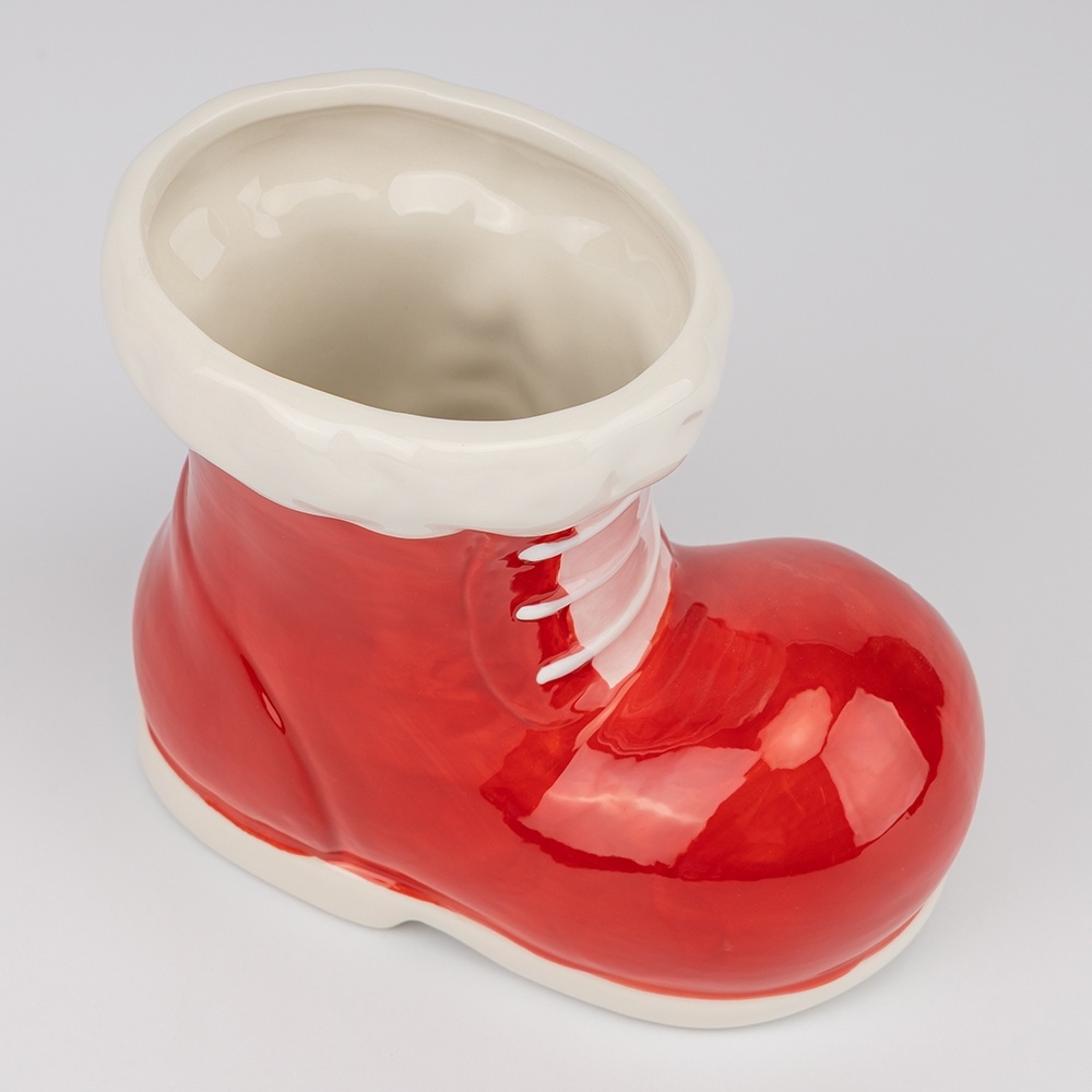 Коллекция Candy Boots — это взрыв цвета и праздничного настроения. Каждая ёмкость выполнена из прочной керамики и имеет форму ярко-красного сапожка с милыми деталями: объемным бантом или рельефными карамельками. Их глянцевая поверхность играет на свету, а насыщенный красный цвет сразу привлекает внимание.