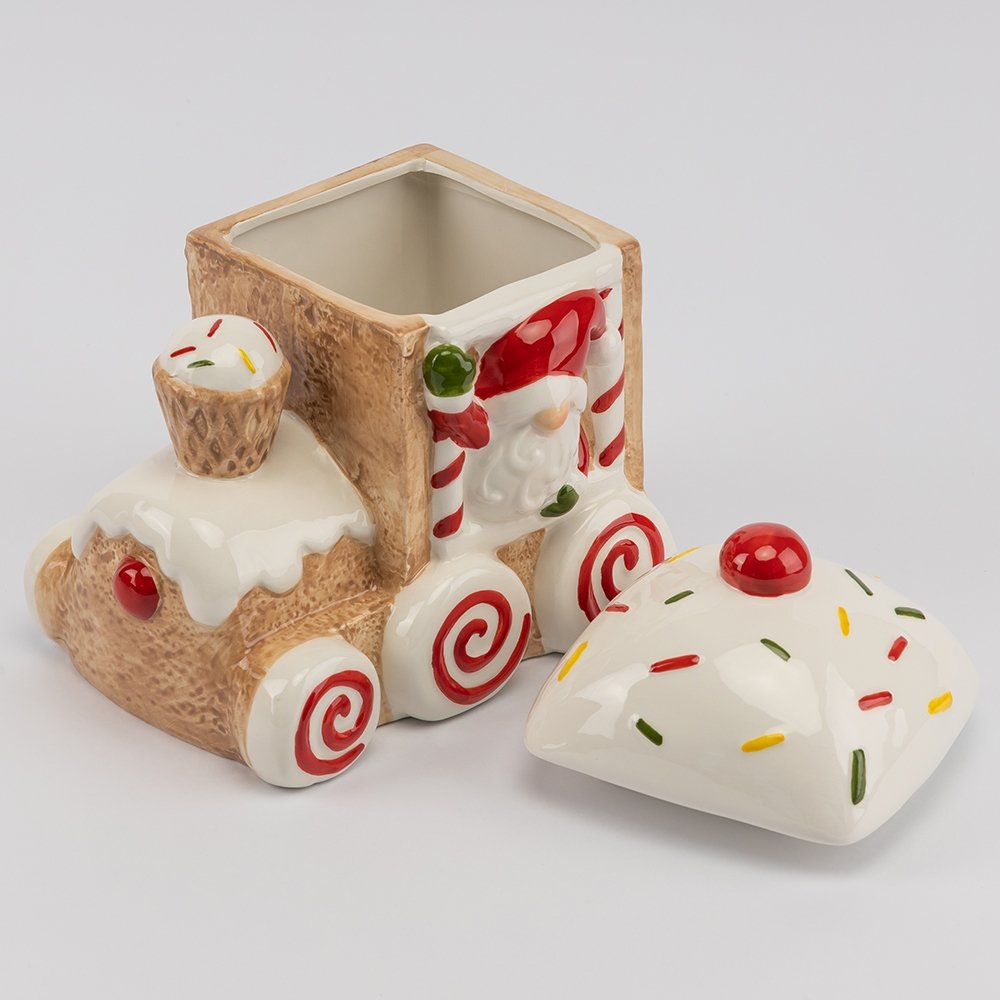 Такий контейнер – не просто аксесуар, а яскравий акцент вашого інтер’єру. Він подарує настрій дітям і дорослим, стане чудовим подарунком на Новий рік, який викличе усмішки й захоплення. Прикрасьте свій дім «Імбирним потягом» і створіть святкову атмосферу, в яку захочеться повертатися знову і знову!
