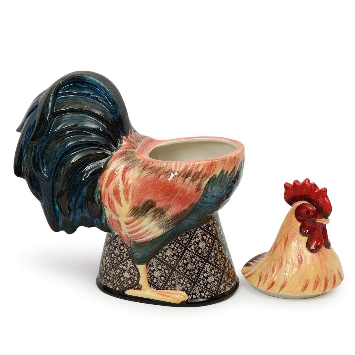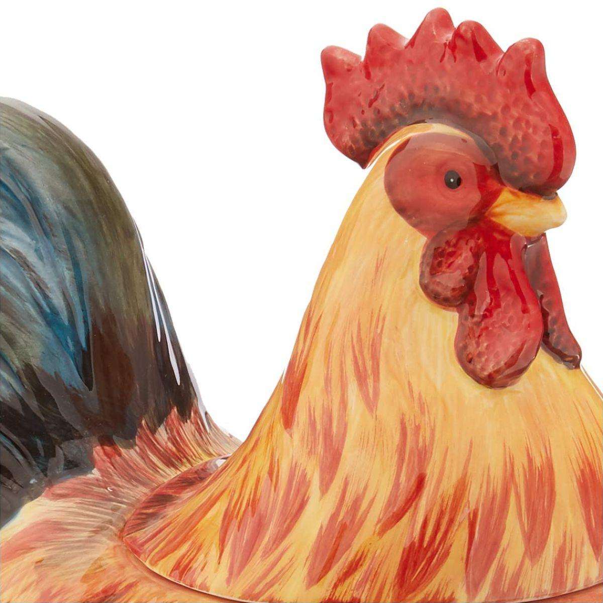 Дизайн изделия в виде яркого петушка создан популярной американской художницей Сьюзан Уингет, автором всей коллекции. Ёмкость выполнена из прочной керамики премиального качества, а её поверхность покрыта стойкой глянцевой эмалью, которая защищает изделие от сколов и потёртостей, придавая ослепительный блеск.