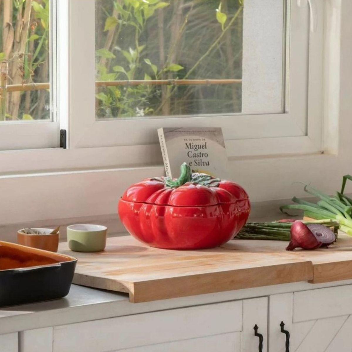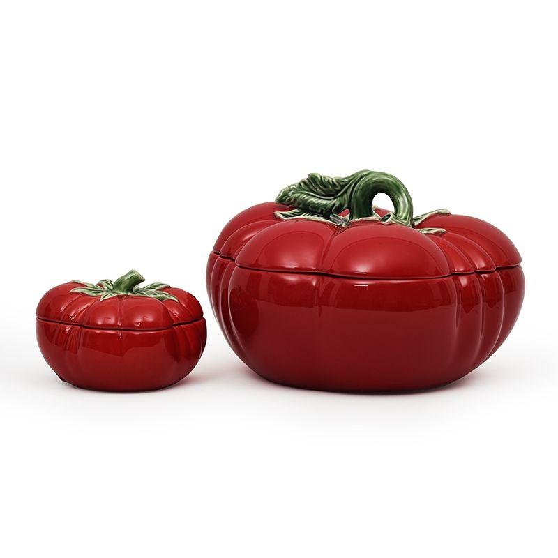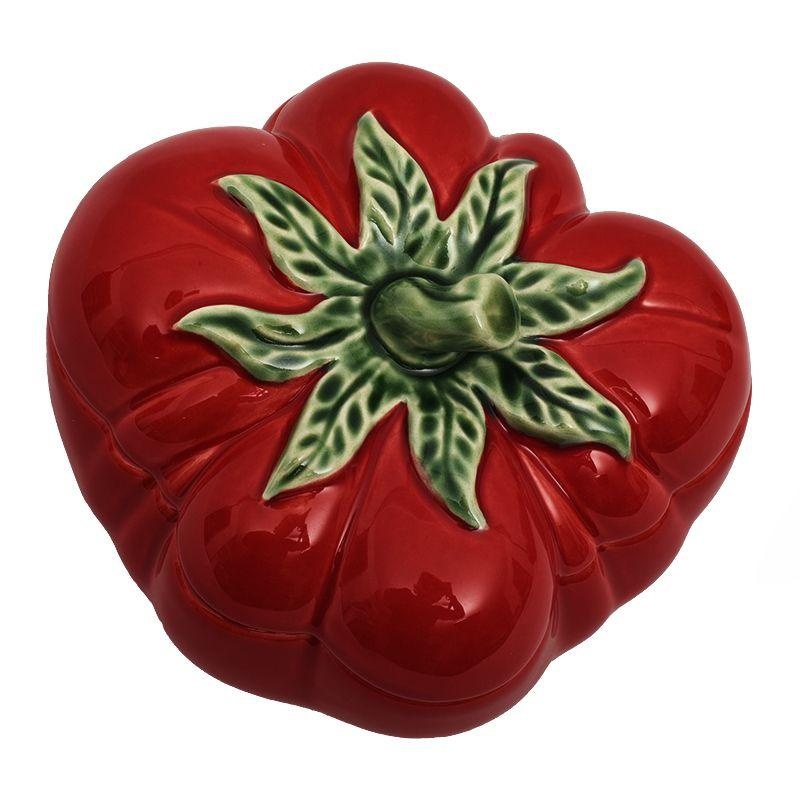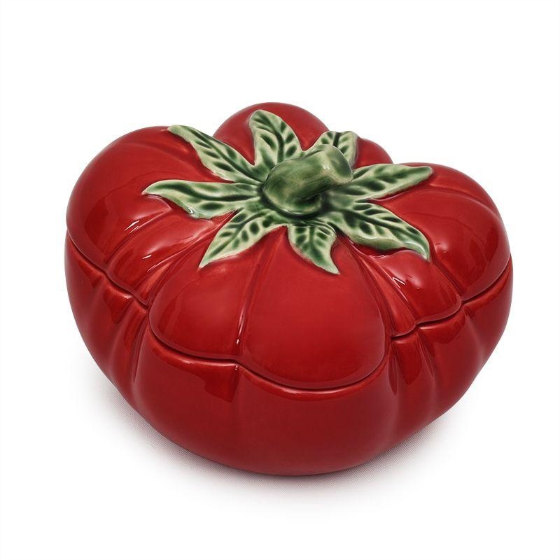 Ёмкость для круп, сахарница, коробочка для кухонных мелочей, соусница или пиала для супа и рагу — этот красивый и универсальный предмет легко справляется с разными задачами. Крупный яркий «томат» изготовлен из прочной португальской майолики, а ручная работа надаёт ему природные формы, выразительный рельеф и насыщенный цвет.