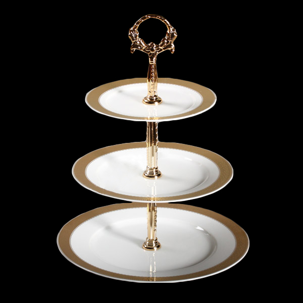 Це ідеальний варіант для подачі десертів, фруктів, канапе або солодощів. Тришаровість дозволяє зручно розмістити частування, економлячи простір і створюючи естетичну композицію. Кожна страва на цій етажерці виглядає немов частина банкету в палаці.