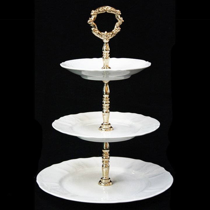 Етажерка 3-ярусна порцелянова білого кольору візерункова Thun Bernadotte Без Декору (25 см,19 см,15.5 см)