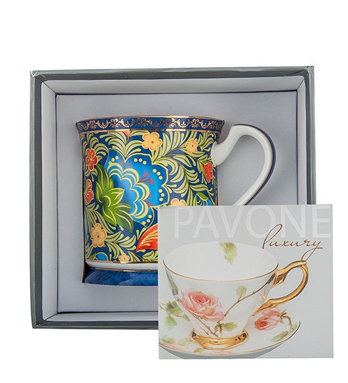 Фарфорова кружка Pavone Квітковий джаз для чаю та кави, 300 мл