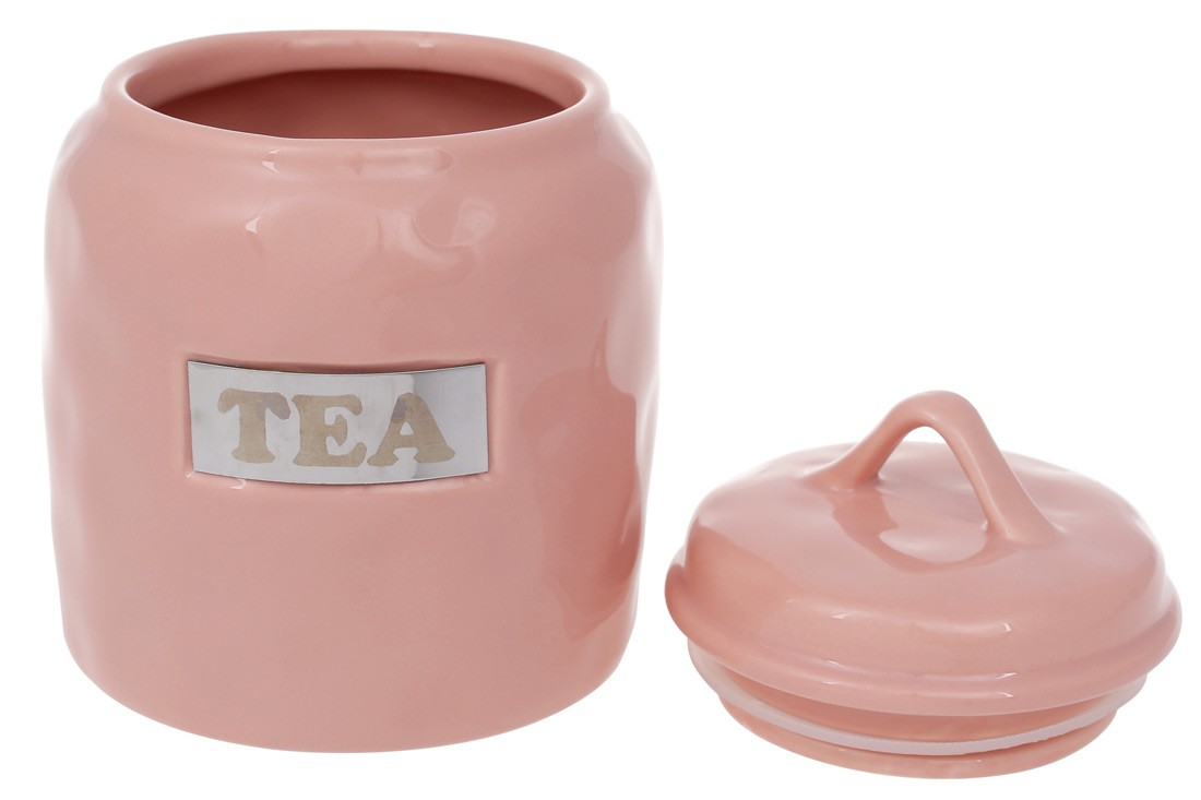 Фарфоровая банка для чая розовая "Tea" 900 мл, Цвет: Розовый
