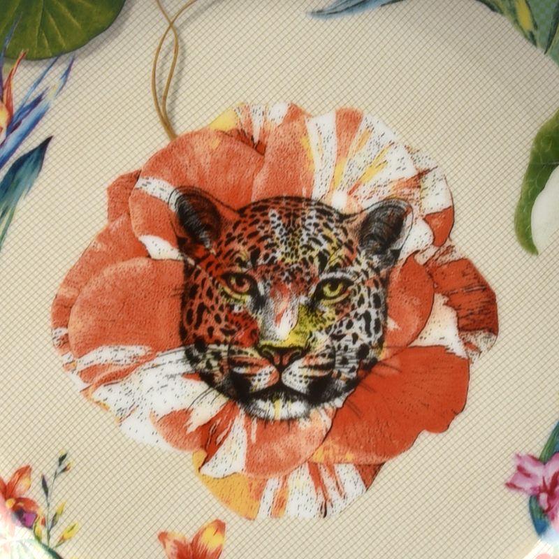 В необычном рисунке использованы растительные и анималистичные мотивы с нарочито подчеркнутым эффектом декалькомании. Итальянские мастера проявили креативность даже в выборе фона для фантазийных картинок, благодаря чему дизайн каждой модели индивидуален. Тарелки, блюда, вазы, салатники, подносы, чайная посуда – разнообразный ассортимент, который рисует картину диких джунглей, но не агрессивных, а красочных, экспрессивных и чарующих.