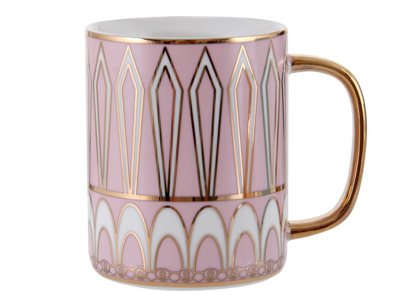 Фарфоровая кружка Royal Glow розовая с золотой ручкой, 330 мл