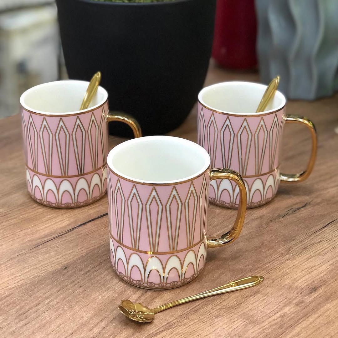 Коллекция чашек Royal Glow — это утонченное сочетание современного дизайна и благородной классики. Каждая чашка украшена изысканным геометрическим орнаментом с золотым акцентом, который сияет в свете и придает изделию ощущение роскоши. Глубокие оттенки синего и нежного розового подчеркивают гармонию и делают каждую деталь уникальной.