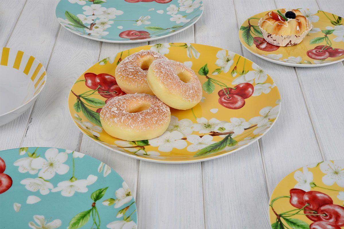Фарфорове блюдо April наповнить вашу сервіровку яскравими барвами та сонячним настроєм. Білі суцвіття та червоні грона вишень, освітлені теплим жовтим тлом, створюють атмосферу весни й затишку за столом. Навіть без страв ця посудина виглядає святково та виразно. У весняній колекції Maison представлено вироби з мотивами вишень на голубому й жовтому тлі, а також лаконічний білий фарфор із ніжними квітковими акцентами — ідеальне поєднання для стильних і гармонійних композицій.