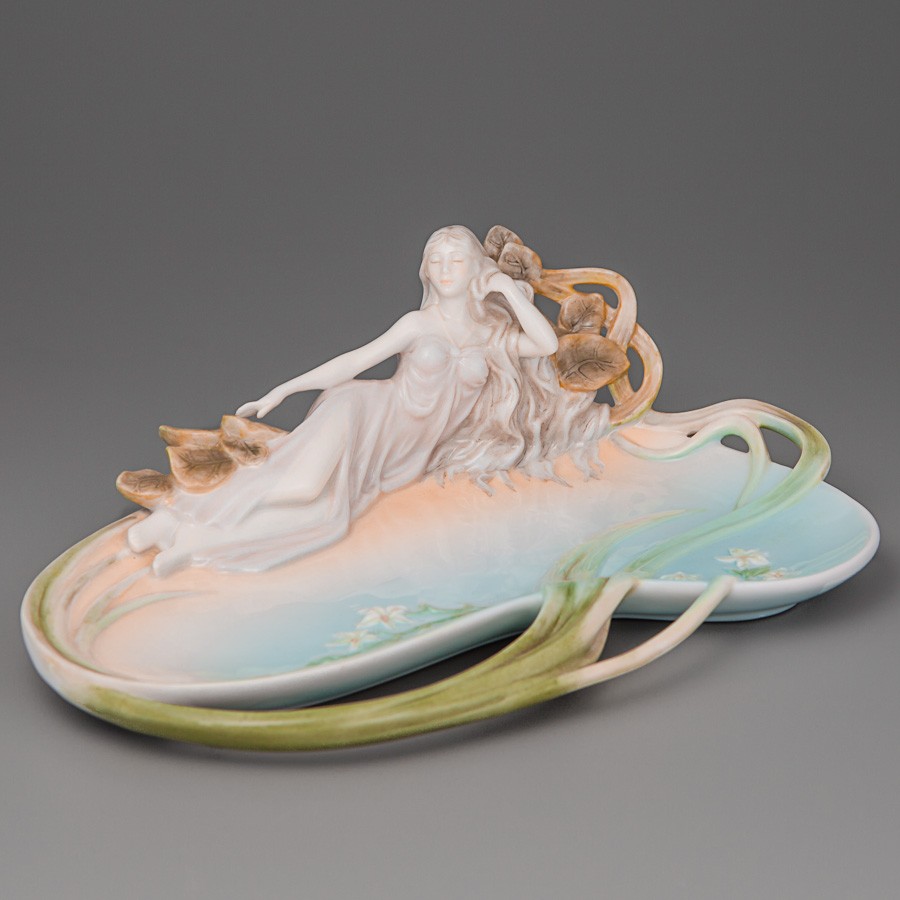 Фарфоровое блюдо "Девушка в листьях" 24х26х8 см
