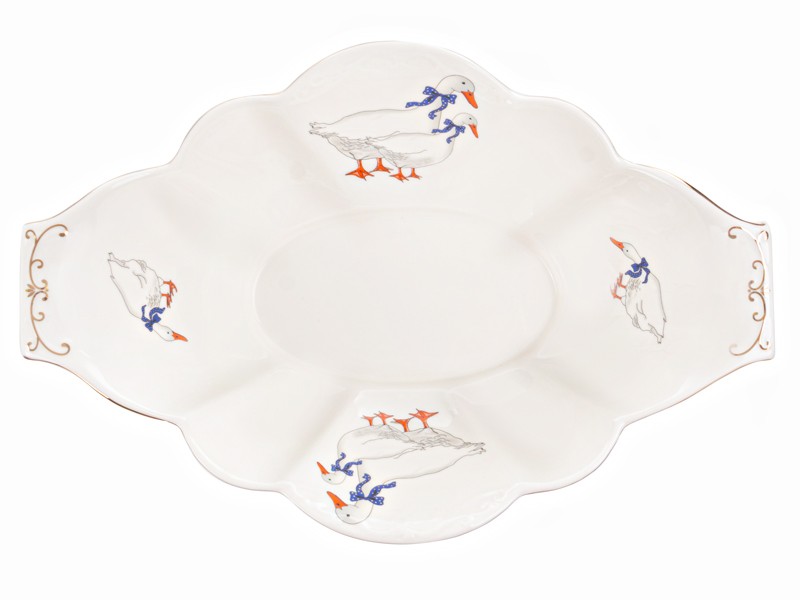 Фарфоровое блюдо для сервировки Гуси 33х23х9 см