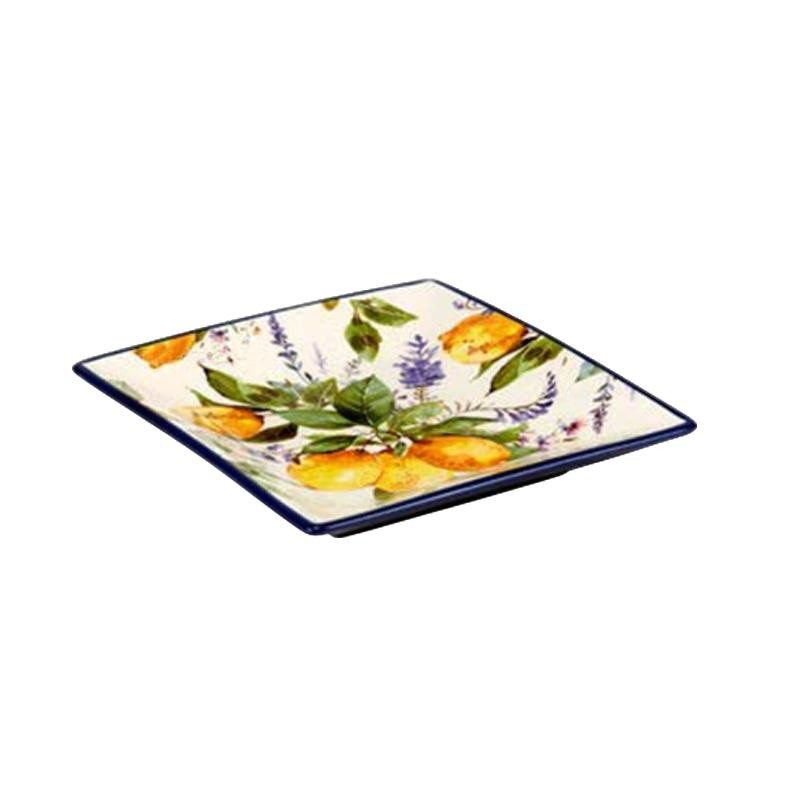 Фарфоровое квадратное блюдо с синей окантовкой и лимонами Soraya 24 см