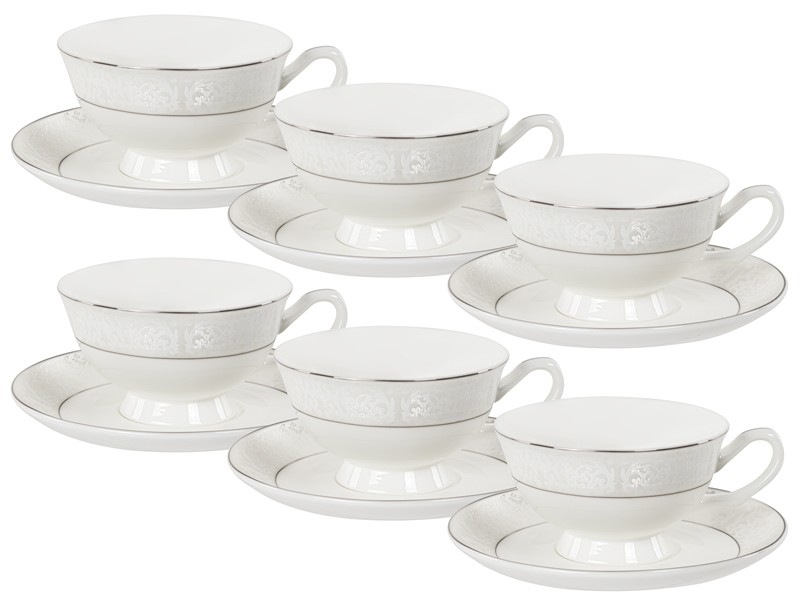 Фарфоровые чашки с блюдцами для чая на 6 персон Аура Lefard 12 предметов
