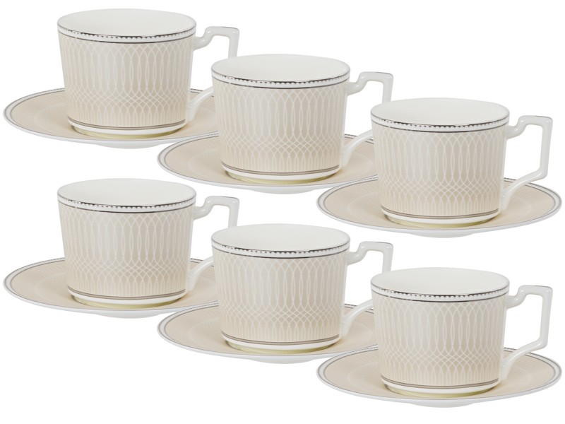 Фарфоровые чашки с блюдцами для чая на 6 персон Infinity Lefard 12 предметов