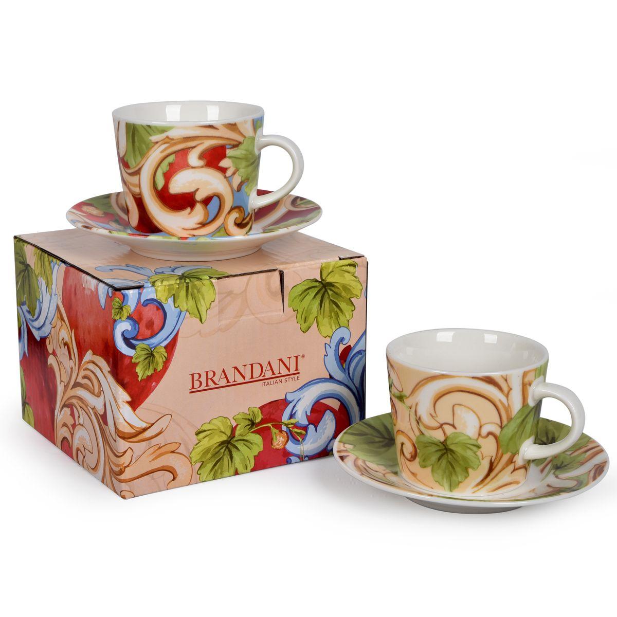 Фарфоровые кофейные чашки с блюдцами на 2 персоны Pomo, Италия