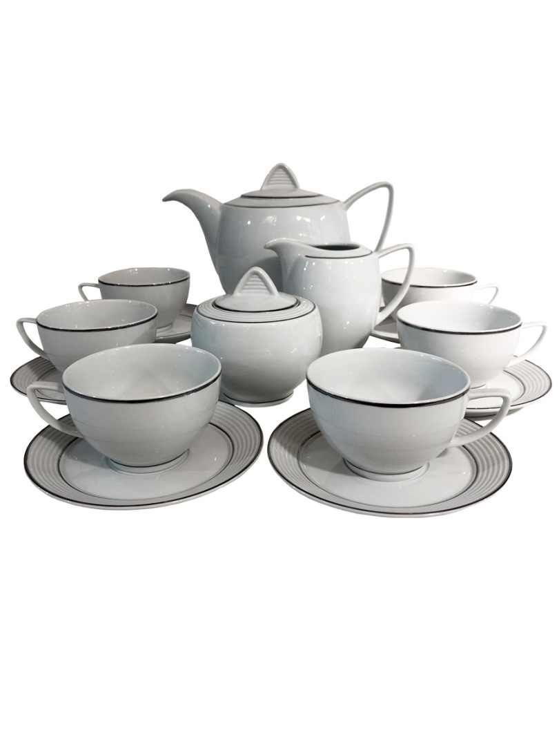 Фарфоровый чайный сервиз белый с платиновым ободком Bernadotte Lea 17 пр/6 п (240 мл)