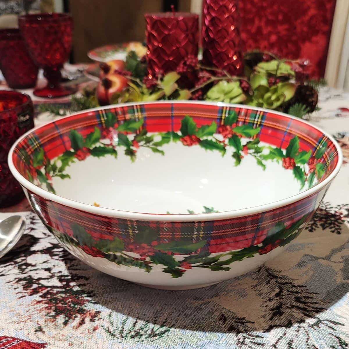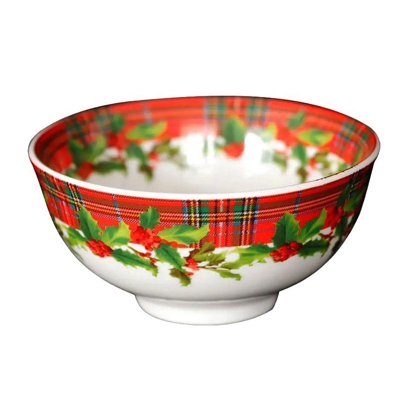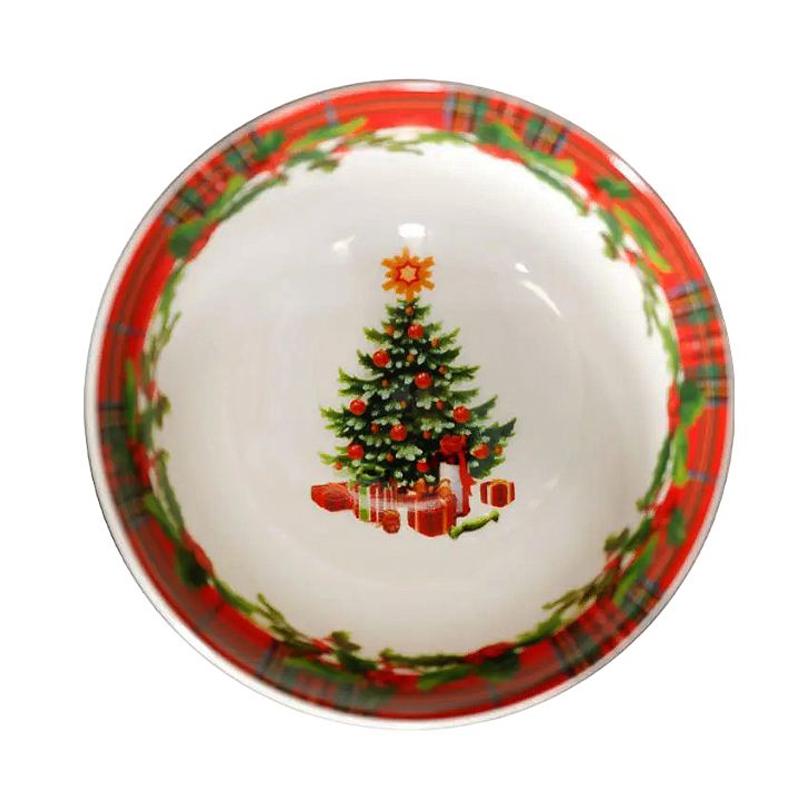 Фарфоровый глубокий салатник в клетку Рождественская Ёлочка 24 см