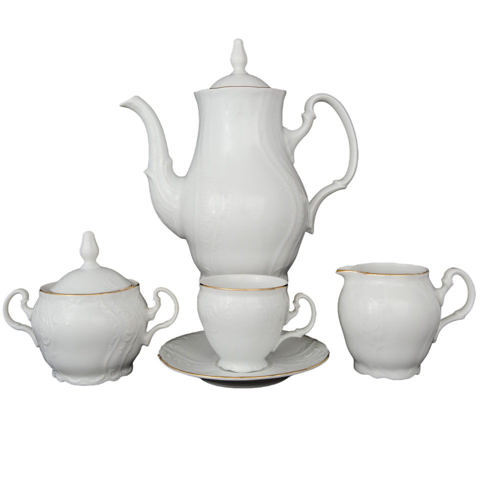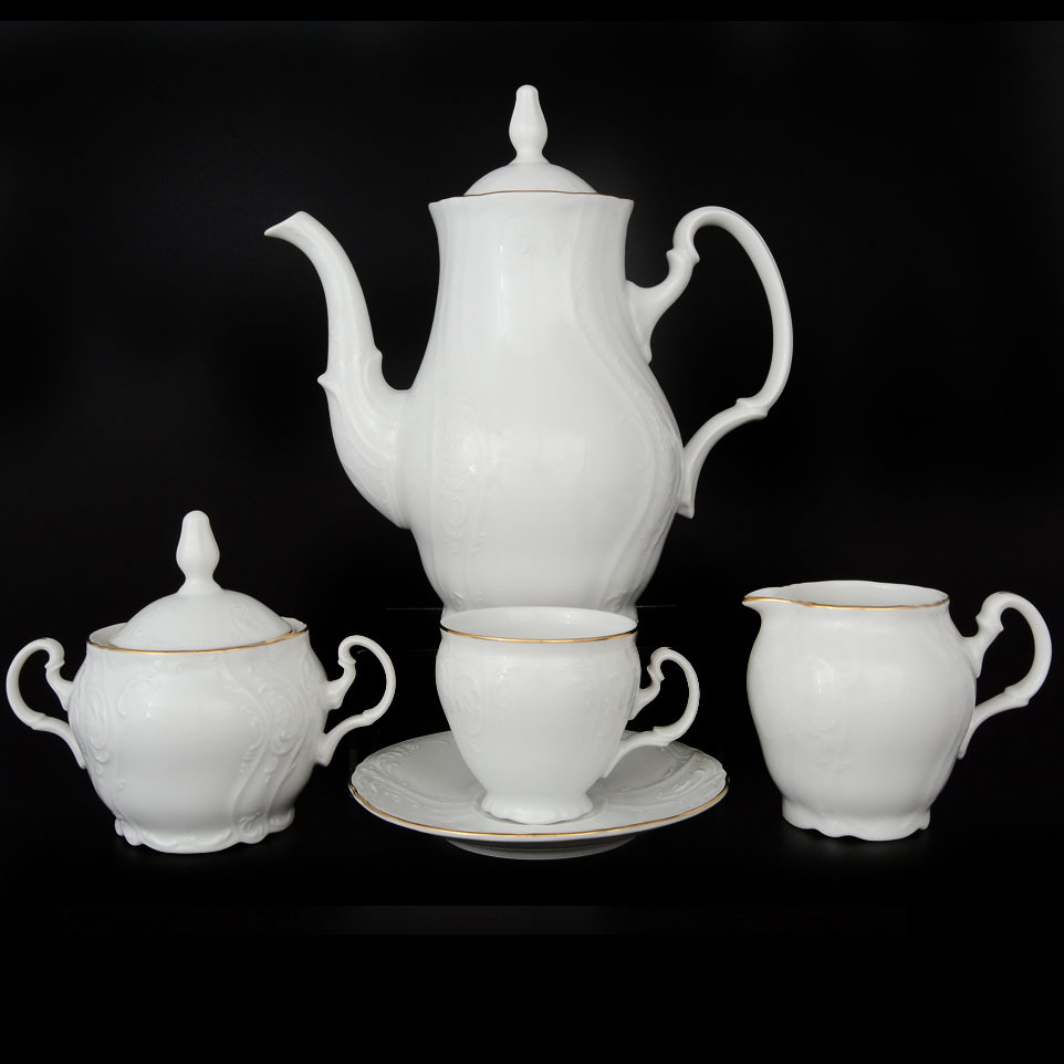 Фарфоровый кофейный сервиз белый Bernadotte Золотой Ободок 6/17