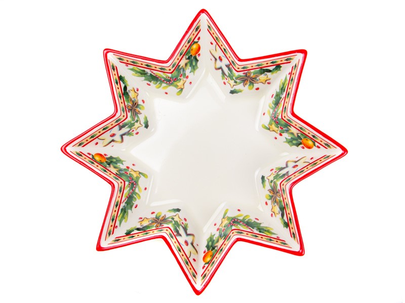 Фарфоровый новогодний салатник Be Happy диаметром 26 см — это эффектное украшение праздничного стола и воплощение настоящего зимнего настроения. Его форма в виде звезды символизирует торжество, свет и радость, а яркий орнамент с еловыми ветвями, ягодами и золотистыми акцентами придаёт особую атмосферу сервировке. Это блюдо моментально притягивает взгляд и создаёт ощущение праздника даже в повседневные дни.