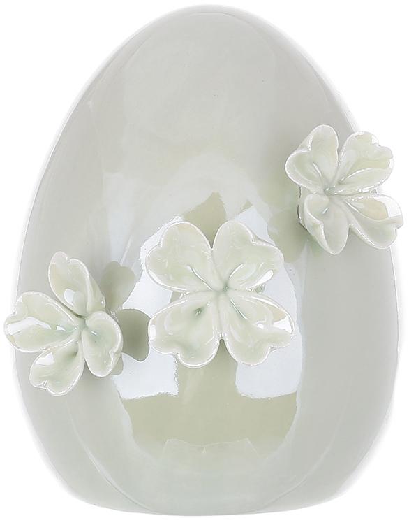 Декоративные фигурки Яйцо в цветах для украшения стола и помещений на пасхальные праздники. В наборе 2 перламутровых зеленых фарфоровых яйца с цветочным декором.