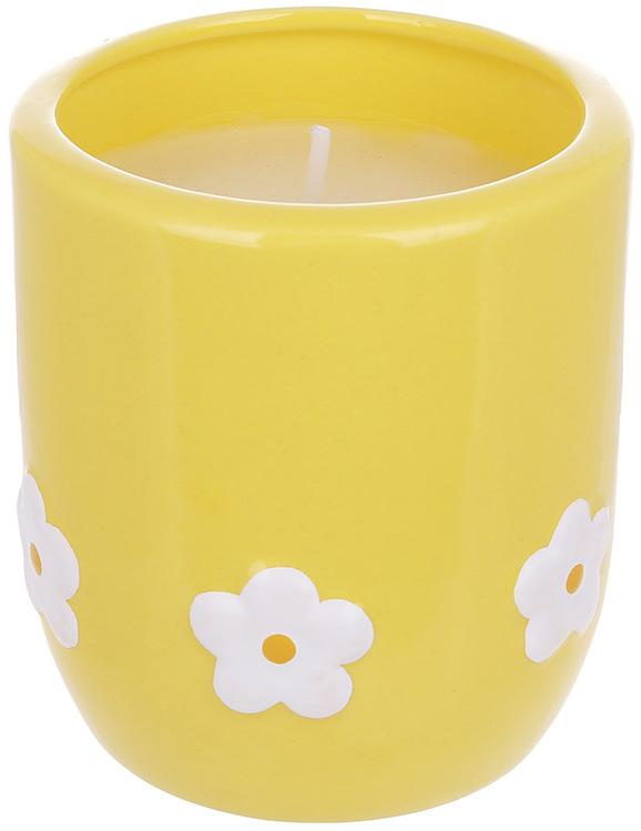 Фарфоровый желтый подсвечник "Ромашки" Ø7.5 см с восковой свечой