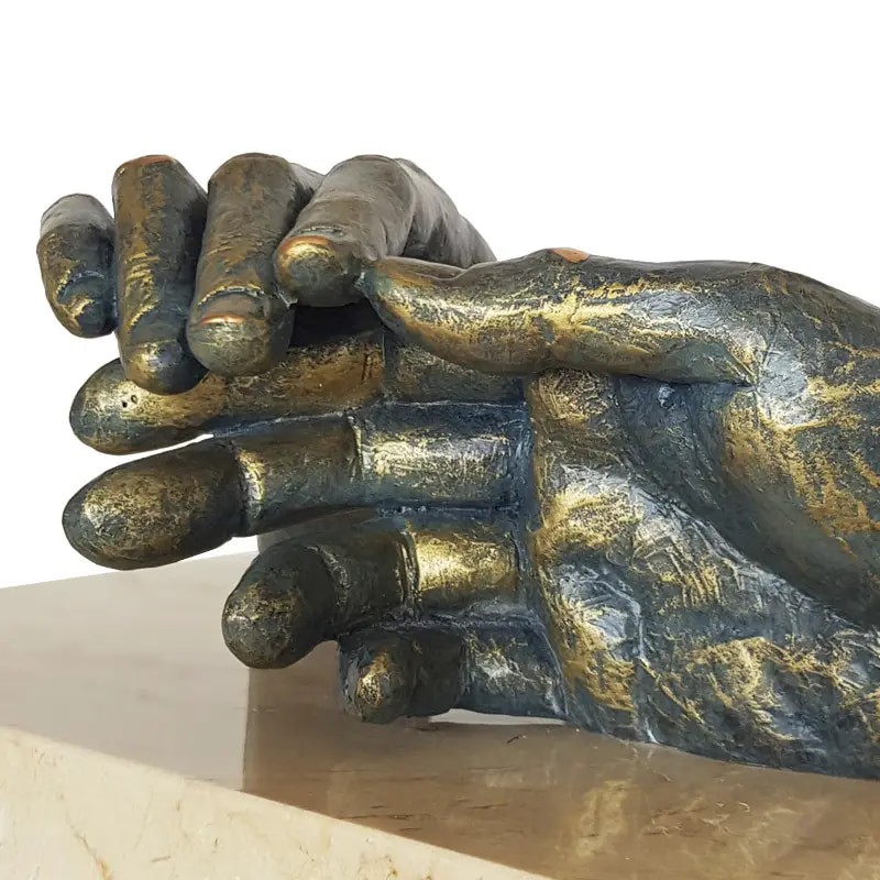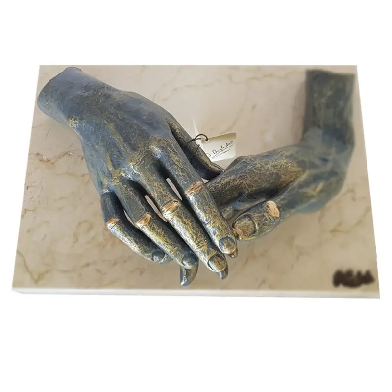 Скульптура «Мир в твоих руках» Anglada – выполнена из глины, нагретой до температуры 1000 С и расписанные скульптором вручную. Уникальная техника нанесения краски – патинирование - придает изделиям необычный бронзовый эффект. На каждом изделии клише производителя и порядковый номер.